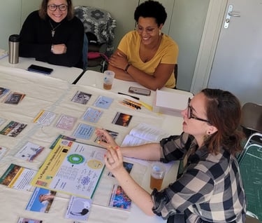Un peu stressée par cette première et essoufflée d'avoir pédaler comme une dératée pour être à l'heure, j'arrive devant les premières participantes. Les autres ne tardent pas à passer la porte. Me voilà donc avec ces six femmes, membres de l'association les Entrepren'Heureuses, pour lesquels j'ai prévu un atelier "Fresque des Nouveaux Récits". L'atelier dure trois heures et, Spoiler Alert, on les a tenues !